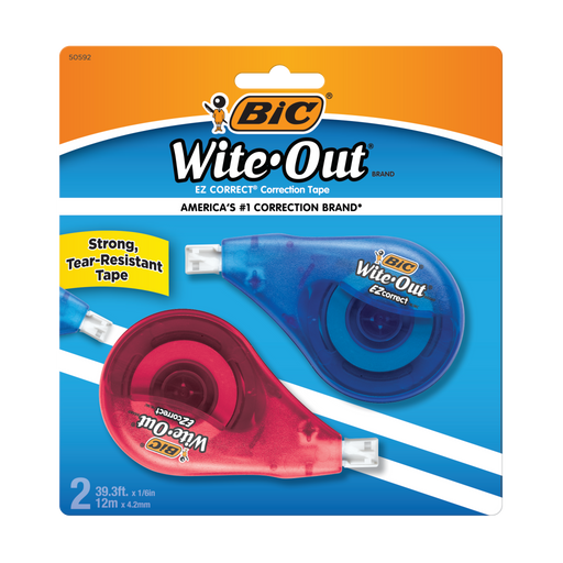 BIC Wite-Out Brand EZ Correct Correction Tape, 39.3 Feet, 2-Count Pack of White Correction Tape, Fast, Clean and Easy to Use Tear-Resistant Tape Office or School Supplies