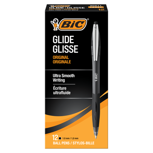 BICExperience ultra smooth writing with BIC Glide Black Retractable Ballpoint Pens. These 1.0mm medium point ballpoint pens are great for everyday wri...