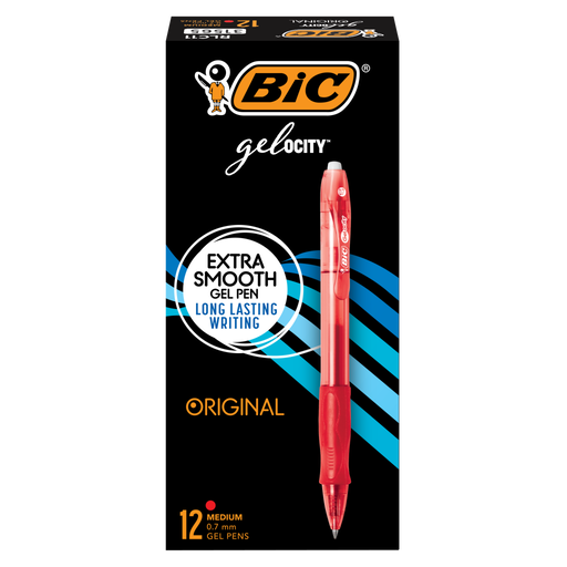 BICExperience smooth writing with BIC Gelocity Original Red Gel Pens. This 0.7mm medium point pen is a long-lasting gel pen that writes 20% longer* ma...