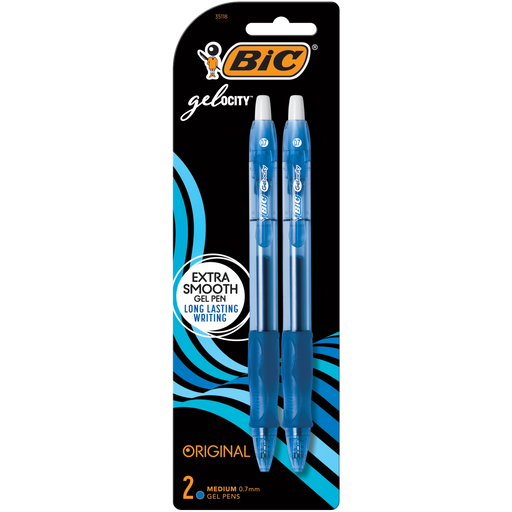 BICExperience smooth writing with BIC Gelocity Original Blue Gel Pens. This 0.7mm medium point pen is a long-lasting gel pen that writes 20% longer* m...