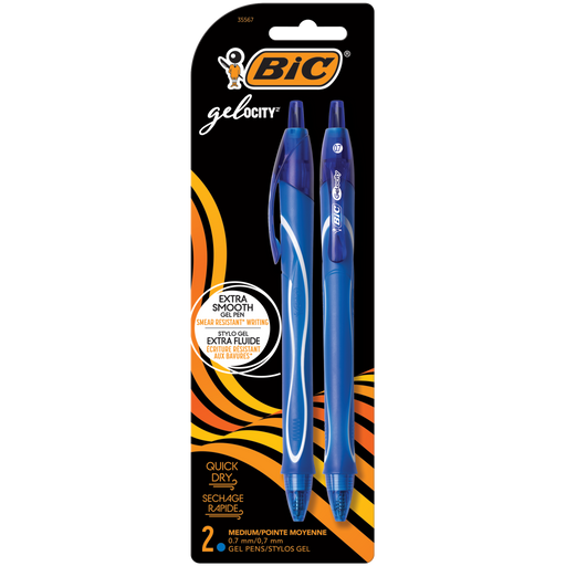 BIC Gelocity Original Blue Gel Pens, Medium Point (0.7mm), 2-Count Pack, Retractable Gel Pens With Comfortable Grip