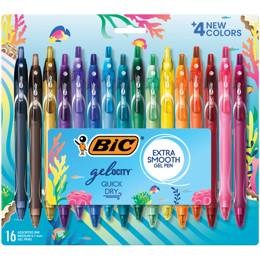BICExperience vivid colors and smooth writing with BIC Gelocity Quick Dry Ocean Themed Gel Pens. These 0.7mm medium point gel pens are perfect for eve...