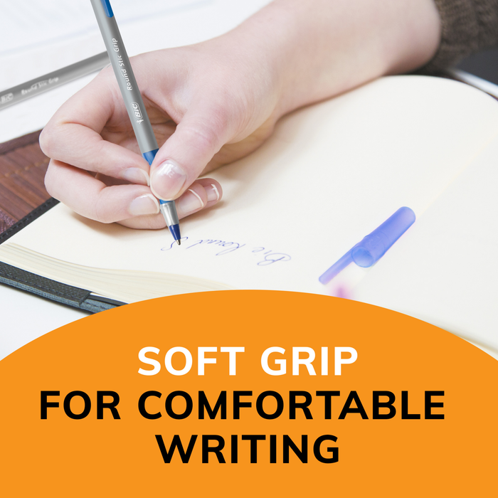 Experience superb control and comfort when writing with BIC Round Stic Grip Xtra Comfort Red Ballpoint Pens. These 1.2mm medium point pens are great for everyday writing at work, school or home and have Easy-Glide System Ink that writes fluidly and effortlessly. Creating clear, vivid lines, they’re the ideal red pens for writing lists, taking notes, journaling and more. The classic round barrel fits snugly in your hand and the soft grip provides a firm yet comfortable hold, making these ballpoint pens ideal for prolonged writing sessions. With the proprietary Easy-Glide System Ink, these red ink pens provide consistent ink flow and offer up to 50 percent smoother writing compared to BIC's traditional ballpoint pens. Plus, the plastic clip easily attaches to pockets, notebooks and more for quick access on the go. With this 12-count pack of red writing pens, you can write clearly and comfortably. Looking for reliable pens for school or office supplies? Choose BIC Round Stic Grip Xtra Comfort Red Ballpoint Pens for a high-quality and affordable product you can trust.